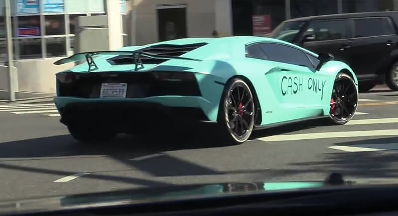 A turquoise Lamborghini Aventador stands out even in Los Angeles traffic, which says a lot about the owner’s taste in cars. Valued at roughly $422,000, the supercar is powered by a 6.5-liter V12 engine that produces about 740 horsepower. Custom graphics reading “cash only” stretch across the body, making the ride just as flashy as the pop icon behind the wheel.