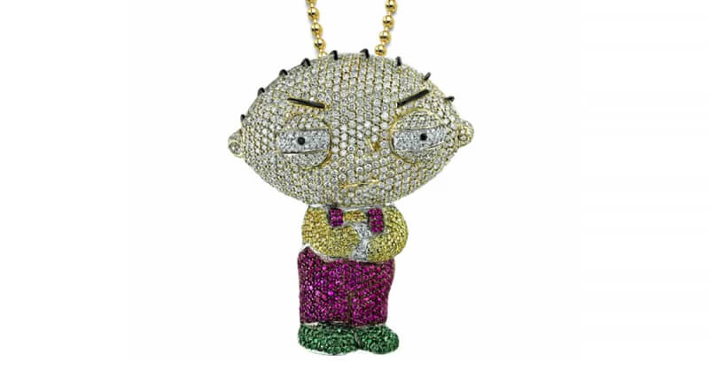 He also spent about $25,000 on a Stewie Griffin necklace. The pendant is based on the Family Guy character and turns a familiar cartoon figure into a custom piece of jewelry. It is set with diamonds and 12-carat rubies, giving it a bright, noticeable finish. The choice reflects a personal interest rather than a traditional luxury item, making it one of his more unusual purchases.