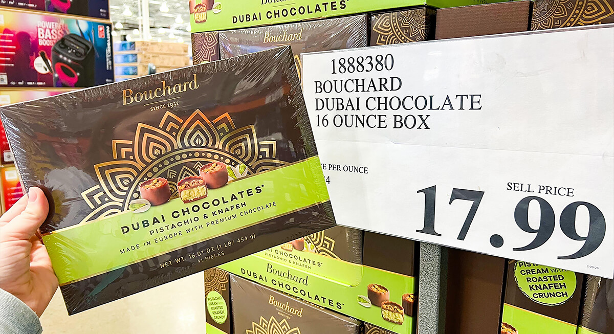 Dubai chocolate gained attention online before landing in Costco’s lineup. Its rich filling and imported appeal make it stand out among standard sweets. Shoppers often discover it by chance, which adds to its draw. Costco tracks trends and introduces items that feel current without turning the store into a specialty shop.