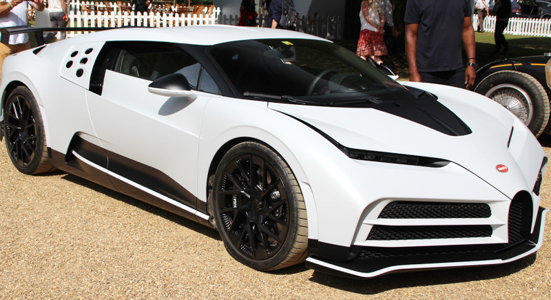 Bugatti made ten of these, all based on the Chiron platform. It draws inspiration from the Bugatti EB110, released in the early 1990s. The Centodieci is 20 kilograms lighter than the Chiron and utilizes the same 1,600-horsepower W16 engine. Its front grille and five air intakes resemble those of the EB110.