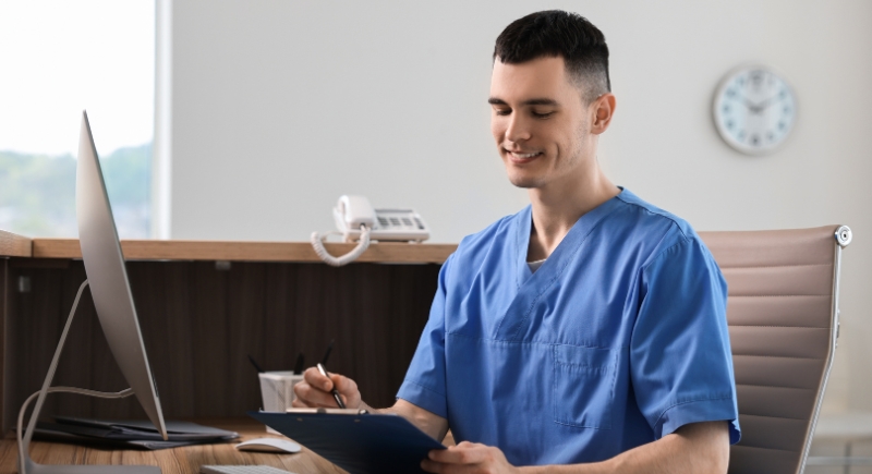 Often the first point of contact in a clinic, medical assistants keep daily operations moving by taking vitals, updating patient records, handling prescriptions, and managing schedules. Demand continues to rise, with projected job growth of 12 percent from 2024 to 2034. Average pay is about $48,461. Entry typically requires a high school diploma plus a certificate program or on-the-job training.