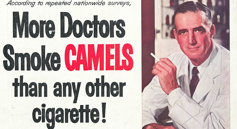 It sounds unbelievable now, but cigarette ads once featured doctors in white coats endorsing specific brands. Slogans like “More doctors smoke Camels than any other cigarette” reassured the public that smoking was safe, even healthy. Stanford’s tobacco advertising archives show the American Medical Association carried cigarette ads into the 1950s, giving the industry medical credibility it had not earned.