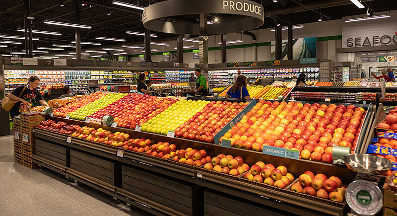 Meat counters often use warm, reddish lighting that makes cuts appear richer in color. Produce sections rely on bright, cooler tones that help greens stand out and make reds look riper. Bakery displays usually glow under soft, golden light that gives bread and pastries a freshly baked look. Grocery stores adjust lighting by section because the right color and brightness can make products appear more appealing and encourage more purchases.